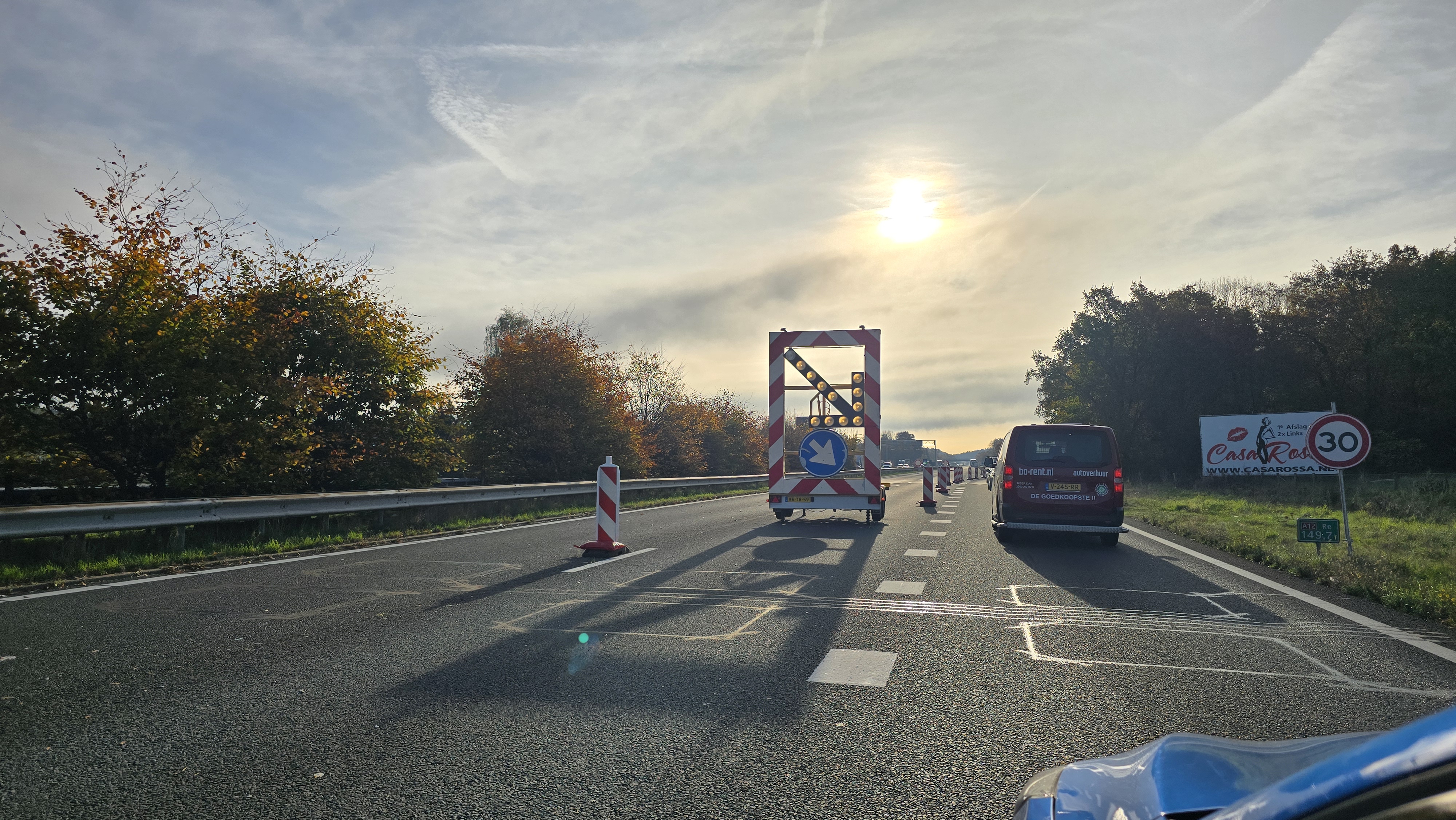 Er wordt nog steeds hard gewerk op de 8, maar de nieuwe tunnel is duidelijk zichtbaar. Nu slechts 6 minuten vertraging, dat zal in de winter wel anders zijn.