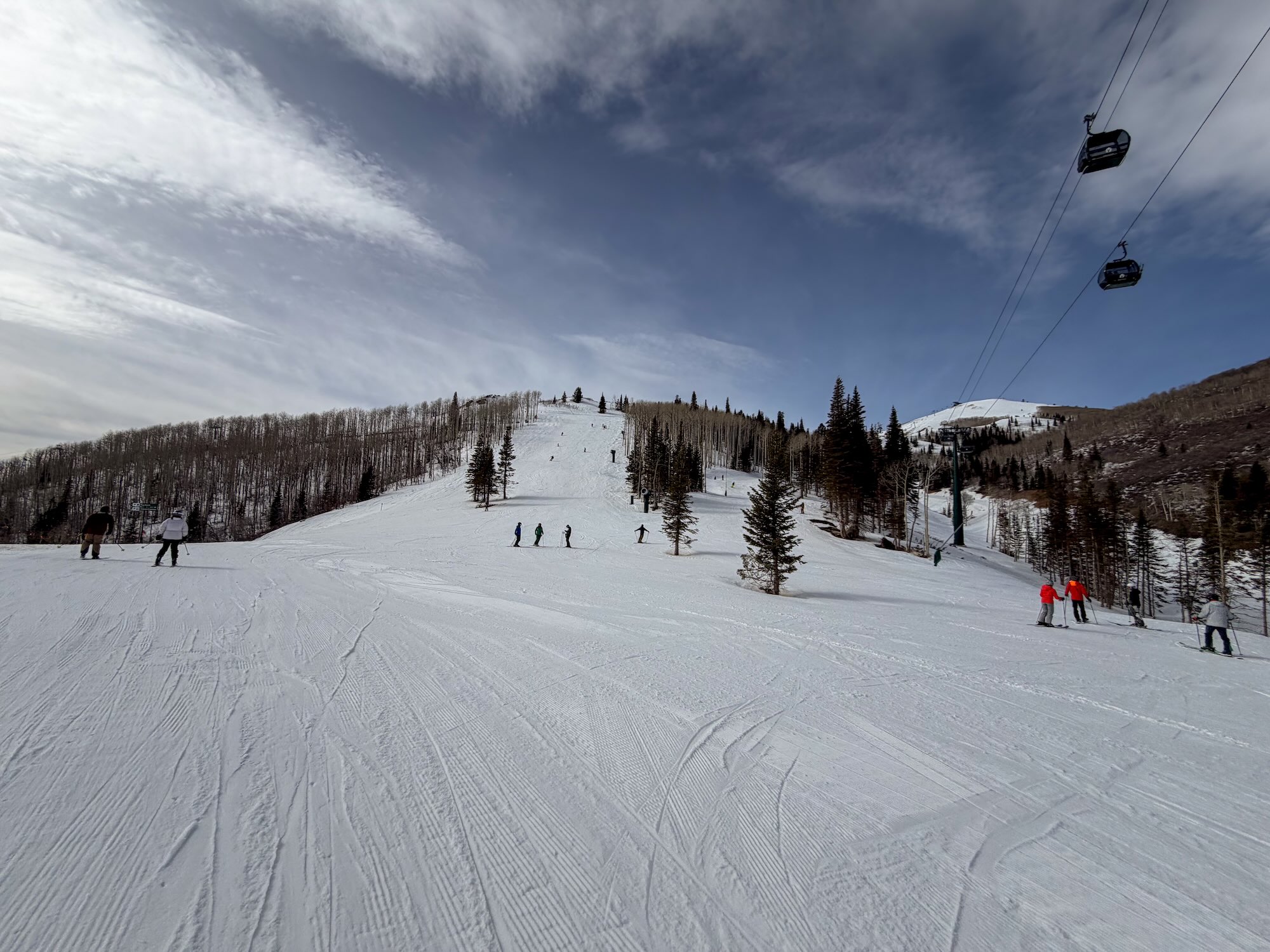 De eerste afdalingen waren echt perfect. Na de eerste gondel raakte je de meeste mensen die je beneden nog zag, alweer kwijt. Met meer dan 4.300 acres aan skiterrein kun je ook niet anders verwachten dan dat er genoeg ruimte is. En met zorgeloos bedoel ik ook écht zorgeloos: brede, perfect geprepareerde pistes en afdalingen voor elk niveau. Of je nu rustig wilt cruisen of lekker wilt carven, hier kan het allemaal.