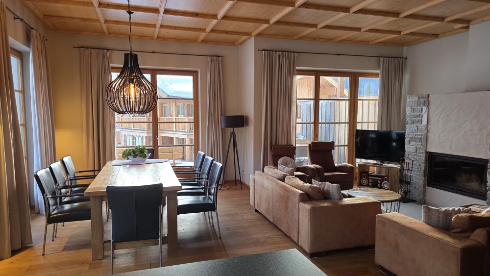 Na de mooie skidagen was het telkens heerlijk thuiskomen in appartement D2. Dit ruime en luxueuze appartement van circa 130 m² is ingericht voor acht personen en biedt een perfecte combinatie van comfort en sfeer. De woonkamer is warm en gezellig ingericht met een grote zithoek rondom de open haard, waar we iedere avond samen de dag afsloten.