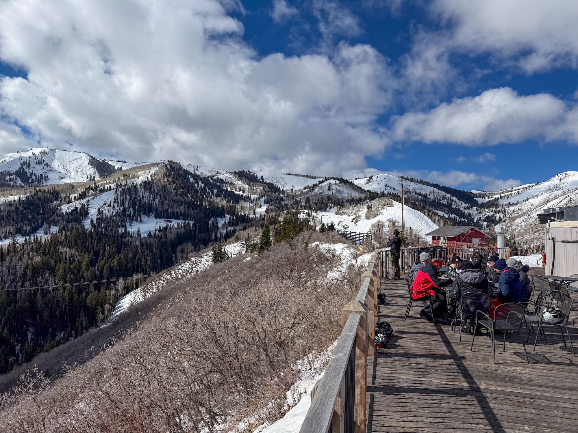 Tijdens de lunch stopten we bij de Lookout Cabin, een restaurant midden in het skigebied. Dit is echt zo’n plek waar je even helemaal tot rust komt. Waar je in veel Amerikaanse gebieden alleen grote 'base lodges' vindt, heb je hier echt die gezellige berghut-ervaring halverwege de berg.