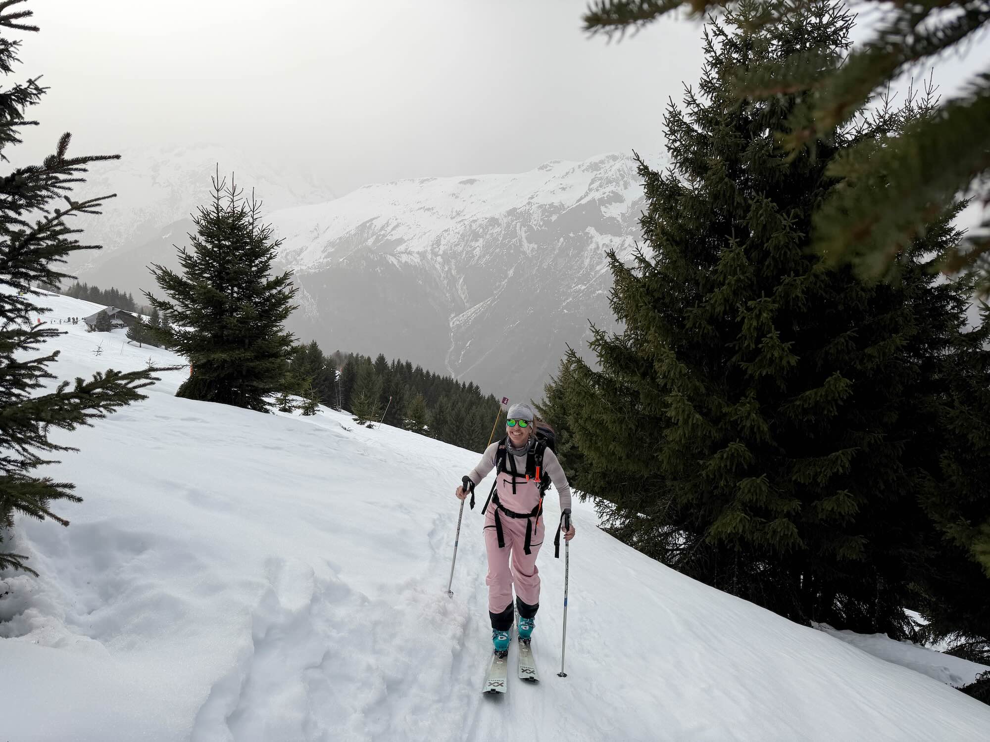 Na een snelle lunch in het chalet stappen we over op toerski’s. In de omgeving liggen speciale routes en samen met een gids verkennen we een stukje buiten het reguliere skigebied. We klimmen zo’n 300 hoogtemeters en leggen een kleine 3 kilometer af. Niet extreem, maar precies genoeg om dat heerlijke gevoel te krijgen. En die paar poederbochten? Die maken het helemaal af.
