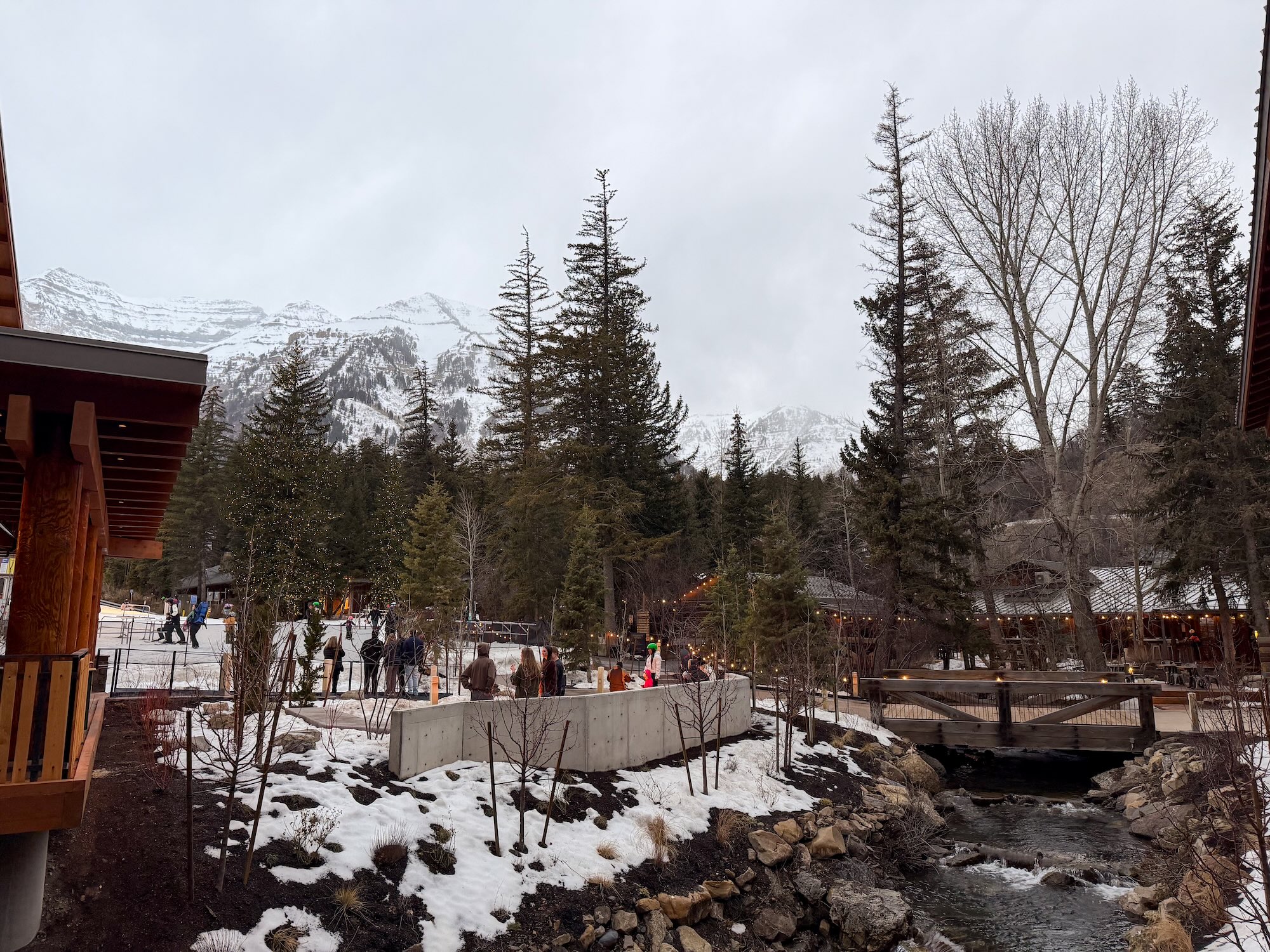 Daar, verscholen tussen de bomen, ligt het resort. En recht tegenover ons? De machtige Mount Timpanogos, die we de hele week al vanuit de verte bewonderden. We checkten in bij de Inn at Sundance Mountain Resort. Sinds september 2025 pas open, dus we hadden de eer om een van de eerste gasten te zijn! Geen onpersoonlijk groot hotel, maar een verzameling warme houten gebouwen, knisperende open haarden en een sfeer die direct aanvoelde als een echte berg-retreat. We zijn nog even naar Provo gereden (zo’n 20 minuten), maar eerlijk gezegd? Zodra je in Sundance bent, wil je eigenlijk nergens anders meer heen.
