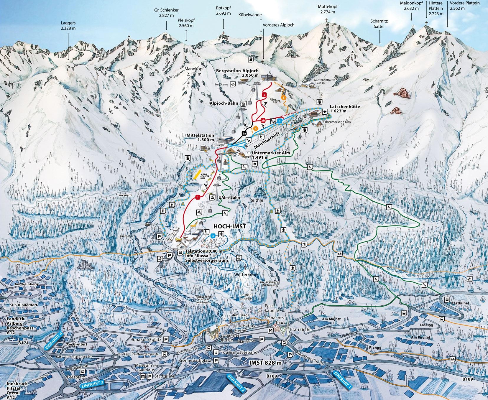 Klik op de pistekaart van Hoch-Imst om hem groter te bekijken: