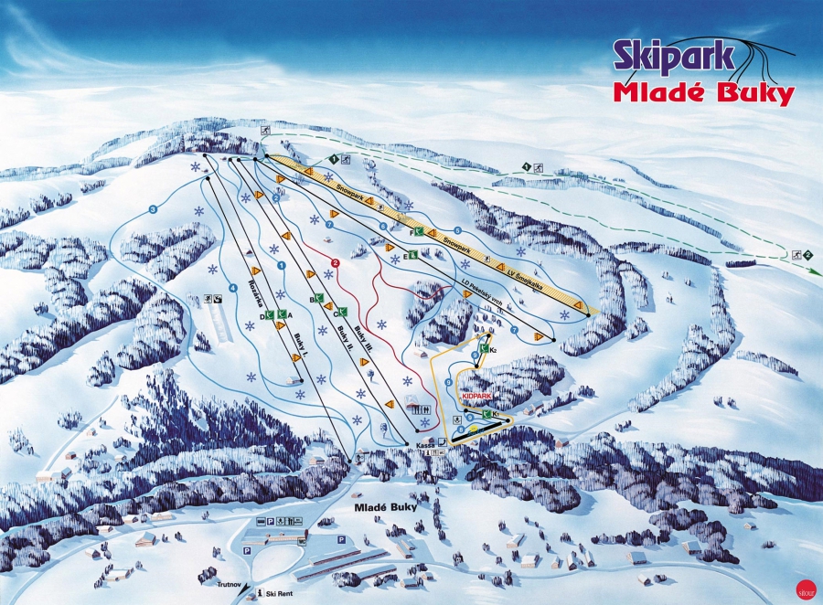 Klik op de pistekaart van Areál Mladé Buky om hem groter te bekijken: